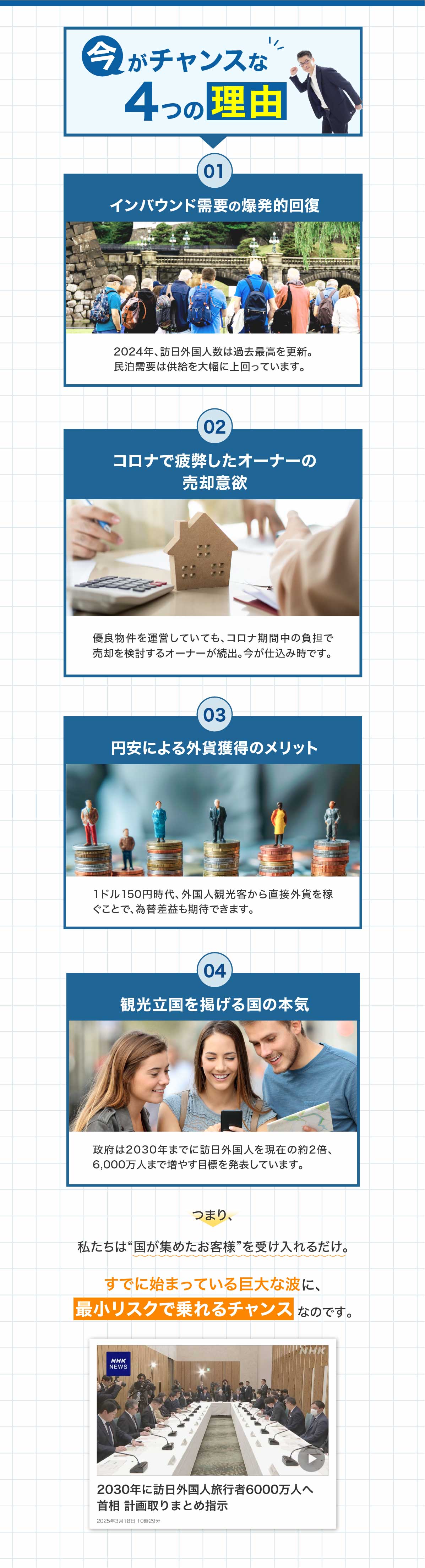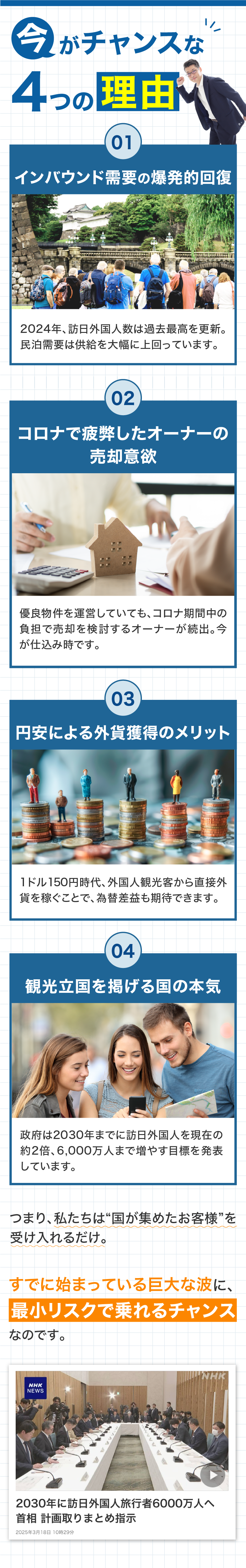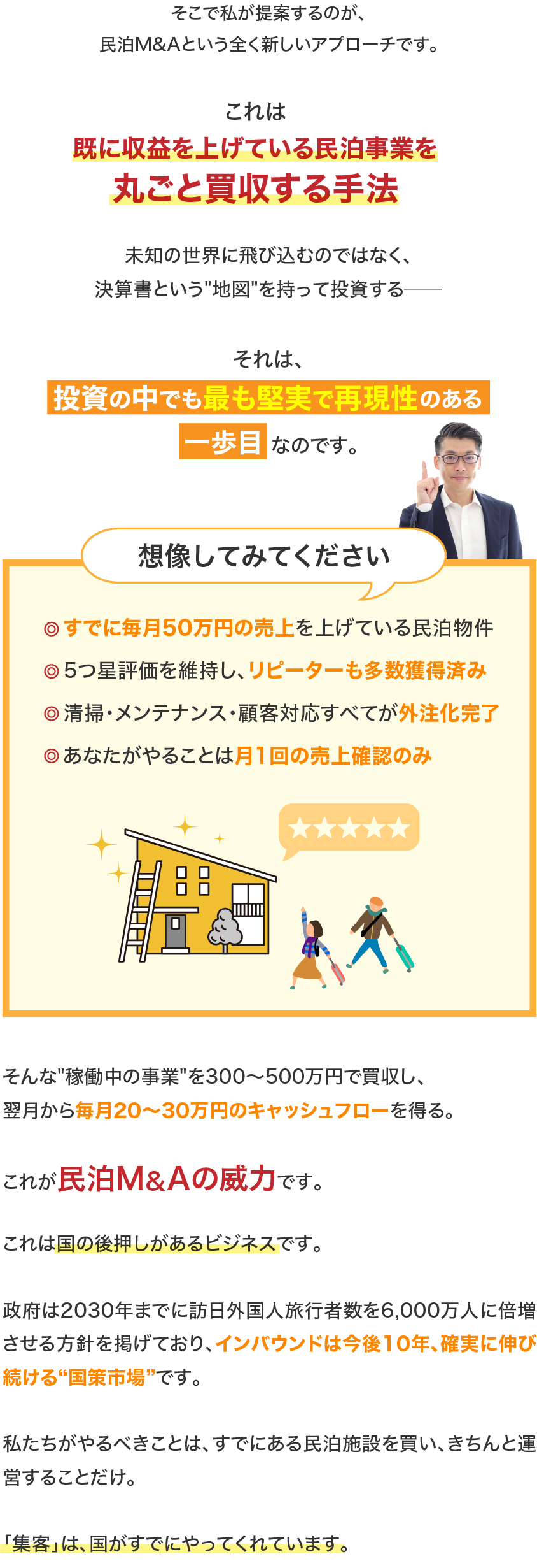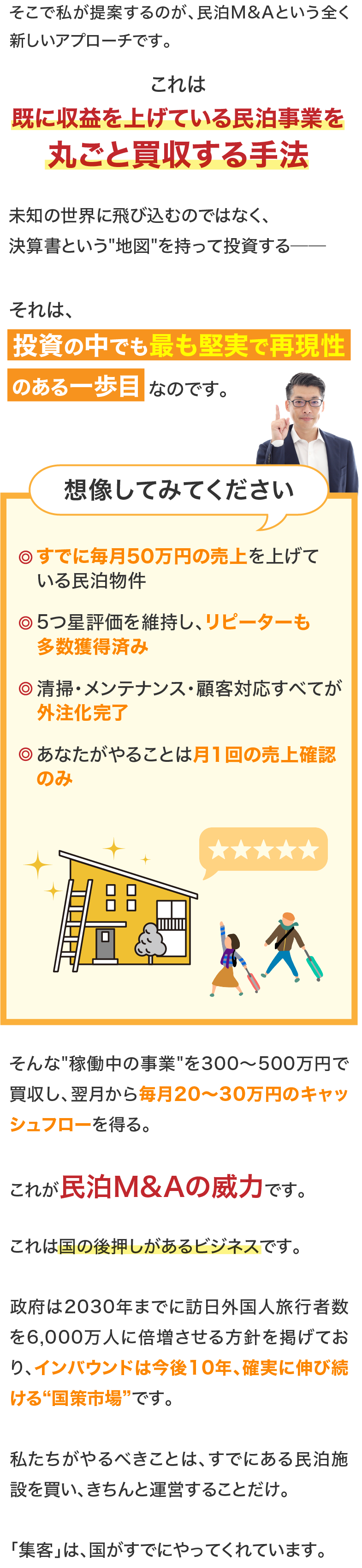 300万円の自己資金で売上400万円/年の民泊を購入し、100万円/年の利益を得られるように(A様・40代)